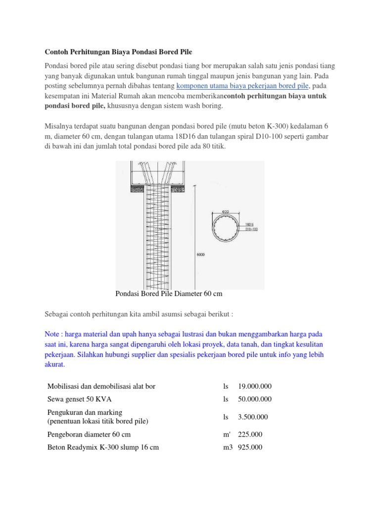 Contoh Perhitungan Biaya Pondasi Bored Pile Dan Alat Berat Pdf